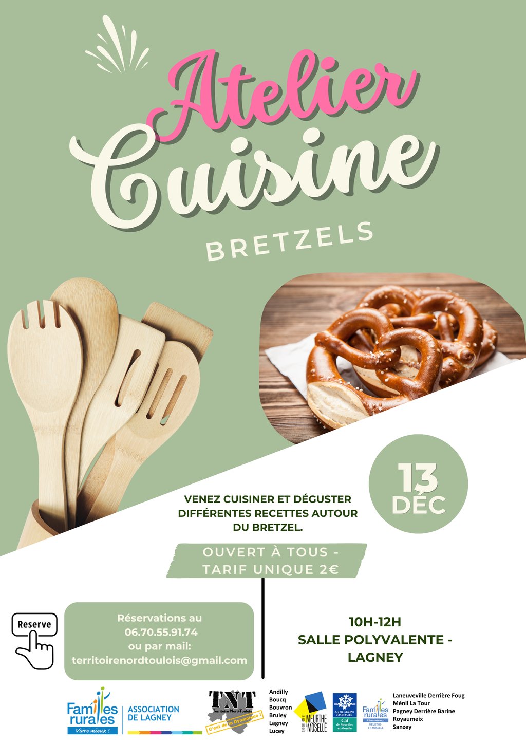 Vous avez envie de cuisiner différentes recettes autour du Bretzel et de la Moricette, venez Samedi 13 décembre de 10h à 12h - salle polyvalente de Lagney. Dégustation autour d'un apéro dinatoire.