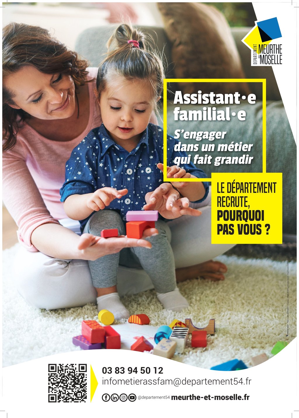 Devenir assistant.e familial.e : le Conseil départemental de Meurthe-et-Moselle lance une campagne de recrutement (il est l’employeur). Recrutement en Meuse également.